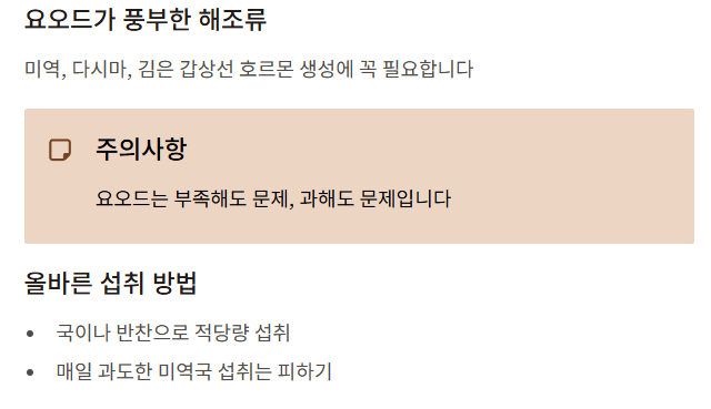 다만 요오드는 부족해도 문제, 과해도 문제입니다.