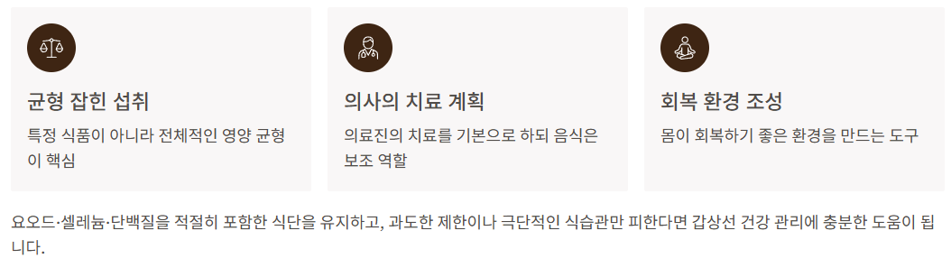 요오드·셀레늄·단백질을 적절히 포함한 식단을 유지하고,