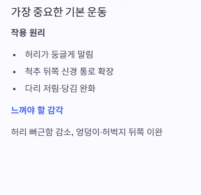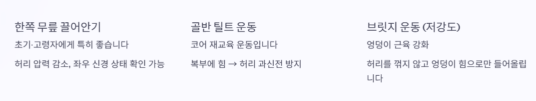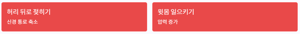 👉 허리를 세우거나 뒤로 젖히는 동작은 증상을 악화시키고,