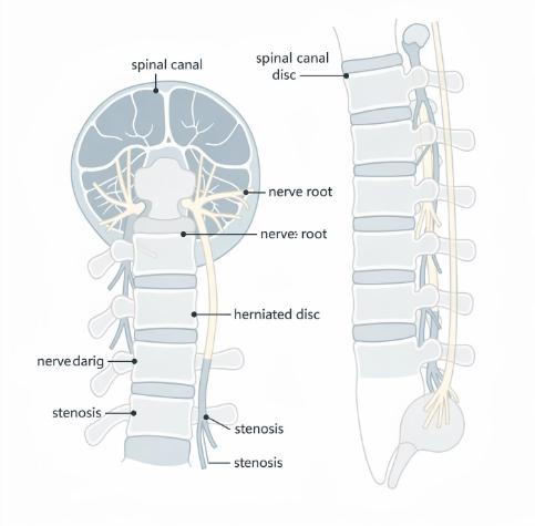 척추 안 신경이 지나가는 통로가 좁아지면서 통증과 저림이 생기는 질환입니다.