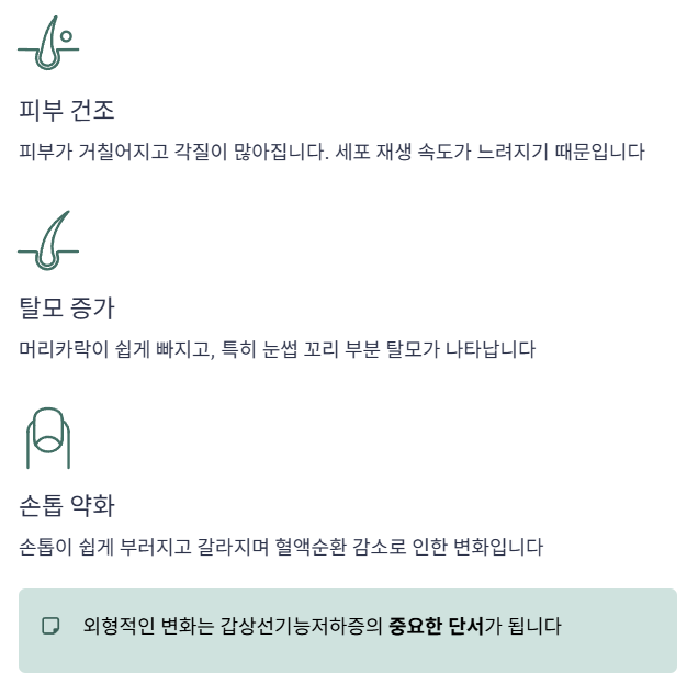 갑상선기능저하증 증상은 느리고 은근하게 진행되지만, 전신 대사 저하의 분명한 신호입니다.