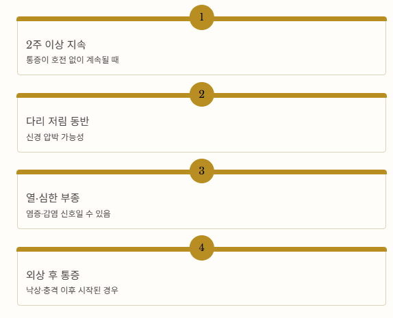 - 통증이 2주 이상 지속될 때