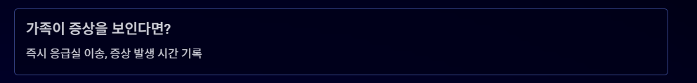 이 방식은 응급상황에서 ‘무슨 증상인가’가 아니라 ‘지금 행동해야 할 것’에 초점을 맞추기 때문에 실제 증상 발견 시 빠른 판단을 돕습니다.