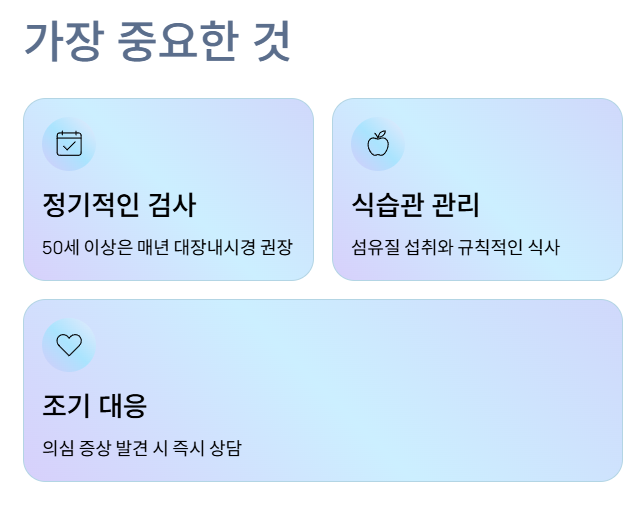 대장내시경 검사를 통해 조기 발견이 가능합니다.