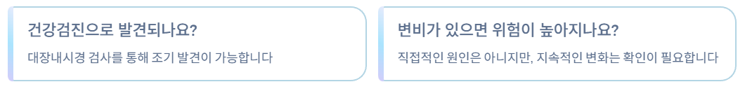 대장암은 가족력이 있거나 50세 이상에서 발생 위험이 높아집니다. 이 경우 증상이 경미하더라도 정기적인 대장내시경 검사가 중요합니다.