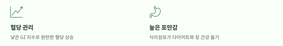 - 식후 혈당 상승이 완만한 특성이 있어 혈당 관리에도 도움이 됩니다.