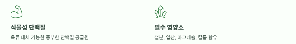 - 철분·엽산·마그네슘·칼륨 같은 영양소를 함유하며,