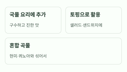 - 식사 곁들임: 샐러드, 밥, 샌드위치 등에 토핑처럼 넣어도 좋습니다.
