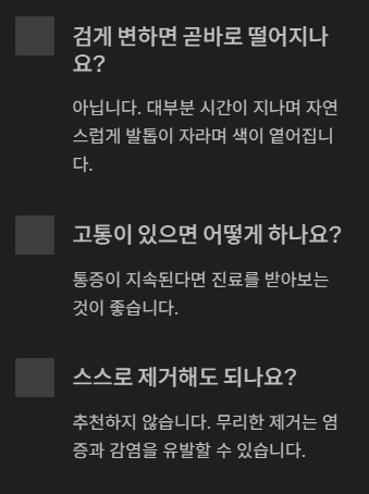 Q1. 발톱이 검게 변하면 곧바로 떨어지나요?
