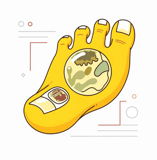 - 곰팡이균(예: 조갑무좀)이 발톱 아래에서 증식