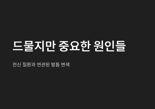 당뇨병, 심혈관질환, 빈혈 등 일부 전신질환이 발톱 변색과 연관될 수 있습니다.
