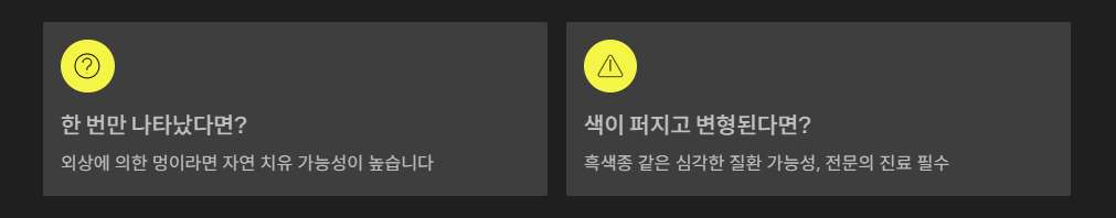 ➤ 외상 원인을 분명히 알 수 없음에도 색이 검게 지속되는 경우