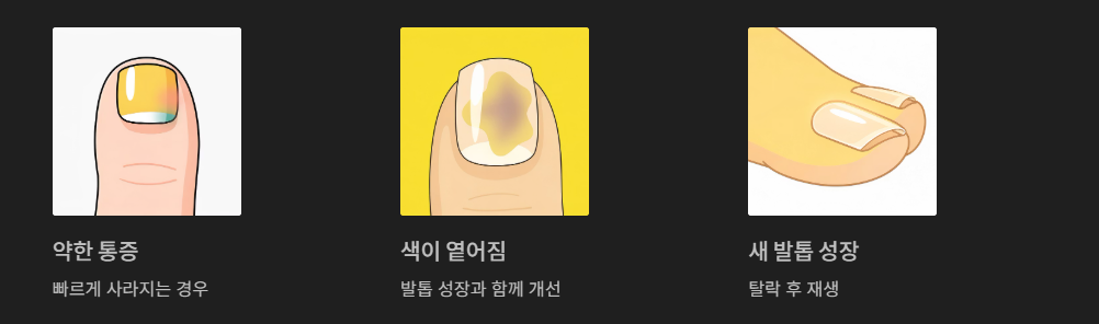 - 시간 경과에 따라 발톱이 자라면서 자연히 사라지는 경우가 많음