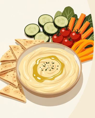 병아리콩을 부드럽게 으깨고 타히니(참깨 페이스트), 레몬즙, 마늘, 올리브오일 등을 섞어 만든 ‘후무스’는 빵·야채와 함께 먹는 대표적인 병아리콩 요리입니다.