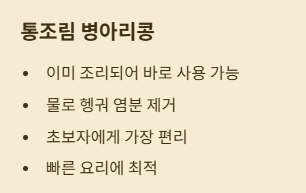 통조림 형태는 이미 조리가 끝나 있기 때문에 바로 요리에 활용할 수 있습니다.