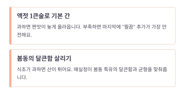 3. 양념장 황금비율(봄동 500g 기준): 단짠산 균형 공식
