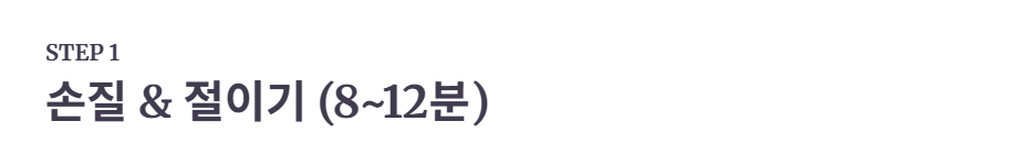 4. 8~12분 후 잎이 “조금 유연해졌다” 싶을 때 바로 끝냅니다.