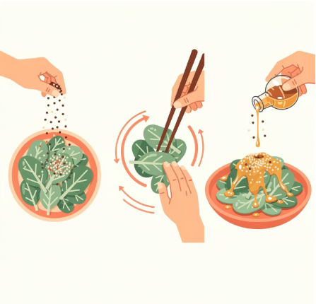 세게 주무르거나 오래 치대면 봄동이 바로 물을 내요. 겉절이는 “강한 손맛”보다 “짧고 가볍게”가 이깁니다.