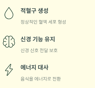 비타민 B12는 적혈구 생성, 신경 보호, 에너지 대사에 필수적인 영양소입니다. 부족하면 피로, 빈혈, 신경 이상 등 다양한 증상이 나타날 수 있습니다.