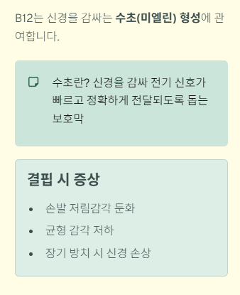 부족하면 손발 저림, 감각 둔화, 균형 감각 저하가 나타날 수 있으며 장기간 방치하면 신경 손상이 지속될 수 있습니다.