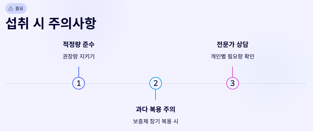 보충제 섭취 시에는 과다 복용에 특히 주의해야 합니다. 셀레늄은 과잉 섭취 시 탈모, 손톱 이상, 위장 장애 등의 부작용이 나타날 수 있습니다. 권장량을 지키고, 장기 복용 전에는 전문가 상담이 필요합니다.