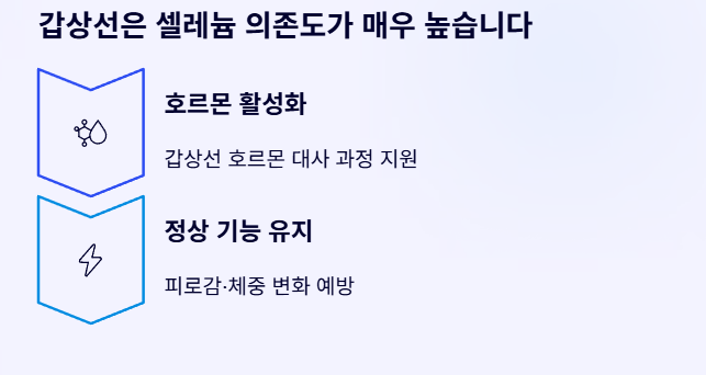 갑상선은 셀레늄 의존도가 매우 높은 기관 중 하나입니다. 셀레늄은 갑상선 호르몬의 활성과 대사 과정에 관여해 갑상선 기능이 정상적으로 작동하도록 돕습니다.