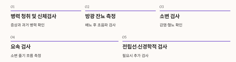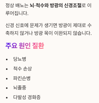 - 응급 상황: 도뇨관 삽입으로 방광을 비우는 응급 조치 등이 필요할 수 있습니다.