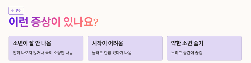 - 자주 소변이 마렵지만 실제로는 잘 나오지 않음