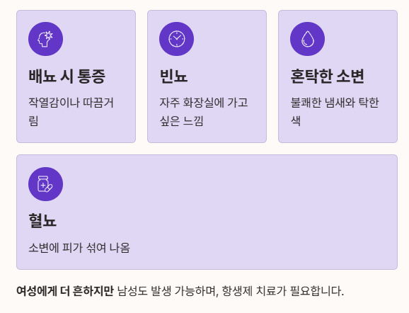 요로감염은 박테리아가 요도를 통해 들어와 방광·요로를 감염시키는 질환이며, 주로 다음과 같은 증상이 함께 나타납니다.