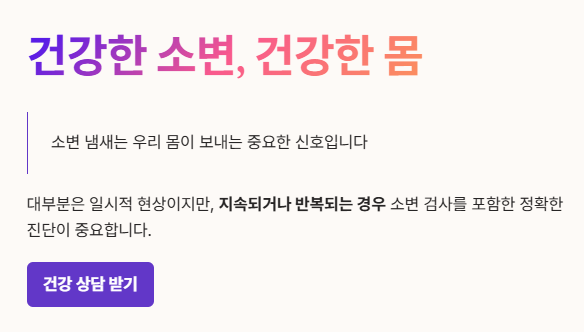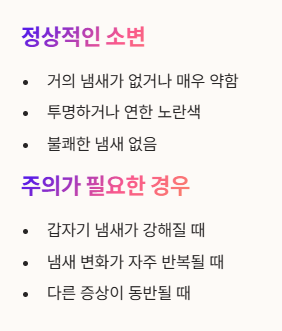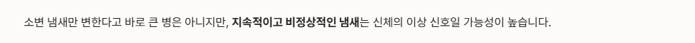 ✔ 냄새 외에 통증, 잔뇨감, 혈뇨, 혼탁 소변 같은 다른 증상이 있을 때