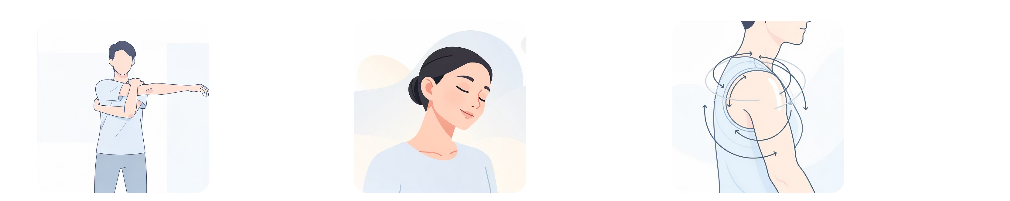 어깨 통증의 대부분은 근육 긴장·관절 움직임 부족·혈류 저하가 원인입니다. 이때 즉각적으로 도움이 되는 원칙은 다음과 같습니다.