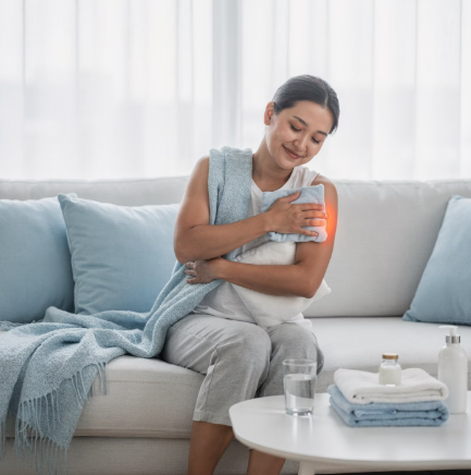 급성기(열감·욱신거림이 강할 때)는 냉찜질이, 뻣뻣하고 뭉친 느낌이 강할 때는 온찜질이 도움이 될 수 있습니다.