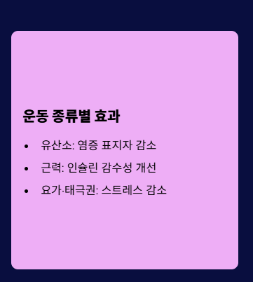 - 유산소 운동: 혈액순환 촉진 및 염증 표지자 감소