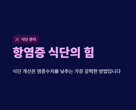 염증을 억제하는 가장 강력한 방법 중 하나는 식단을 바꾸는 것입니다. 특정 식품은 염증성 사이토카인이나 CRP 등의 지표를 낮추는 데 효과적입니다.