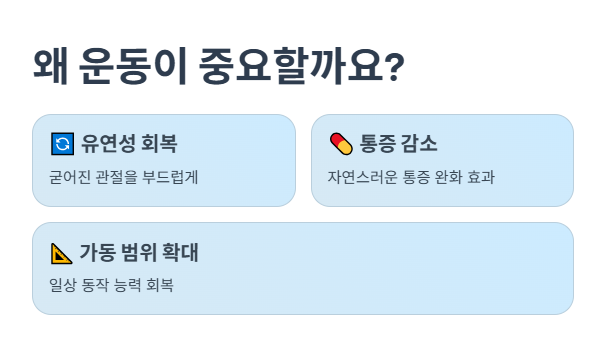 어깨 벌리기 운동은 어깨의 앞부분과 측면 근육을 강화하고, 유연성을 향상시키는 데 중요한 역할을 합니다. 오십견으로 어깨가 굳어지면 어깨 벌리기 운동을 통해 근육의 경직을 풀고, 어깨의 자연스러운 움직임을 회복할 수 있습니다.
