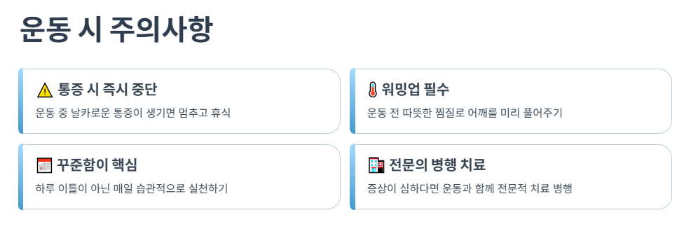 이 운동은 집에서 쉽게 할 수 있는 운동으로, 꾸준히 하면 어깨 통증을 줄이고 회복하는 데 큰 도움이 됩니다.