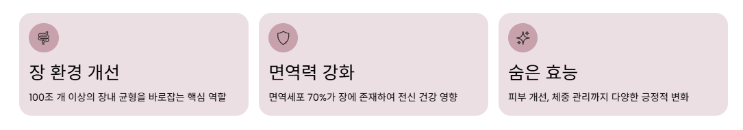 유산균 효능은 장 건강을 넘어 면역력, 피부, 컨디션 관리까지 연결됩니다.