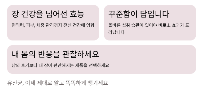 유산균은 약이 아니라 환경을 바꾸는 조력자라는 사실입니다.