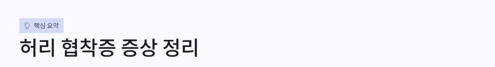 허리 협착증은 단순한 허리 통증보다 “걷다 쉬면 완화되는 다리 통증·저림·무거움” 같은 패턴이 핵심입니다. 이것은 척추관이 좁아져 신경이 눌리고, 허리를 앞으로 굽히는 자세에서 신경 공간이 상대적으로 넓어져 증상이 줄어들기 때문입니다.