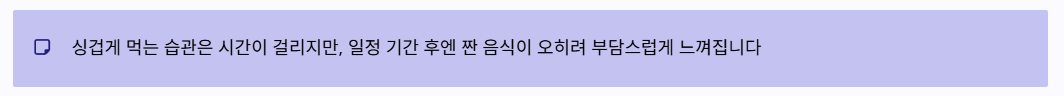 싱겁게 먹는 식습관은 단기간에 바뀌지 않지만, 일정 기간이 지나면 오히려 짠 음식이 부담스럽게 느껴집니다.