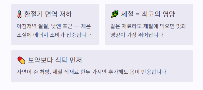 봄철 컨디션이 떨어진다고 느껴진다면 보약을 찾기 전에 식탁부터 점검해보세요. 달래, 냉이, 주꾸미 같은 제철 식재료를 한두 가지라도 식단에 추가해보는 것이 현실적인 시작입니다.