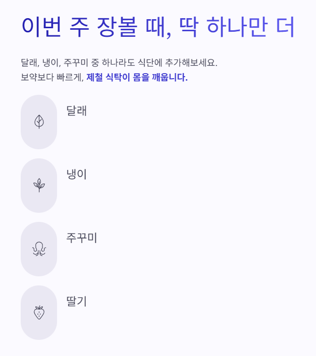 이번 주 장을 볼 때는 의식적으로 3월 제철음식을 골라보세요. 생각보다 몸이 빨리 반응합니다.